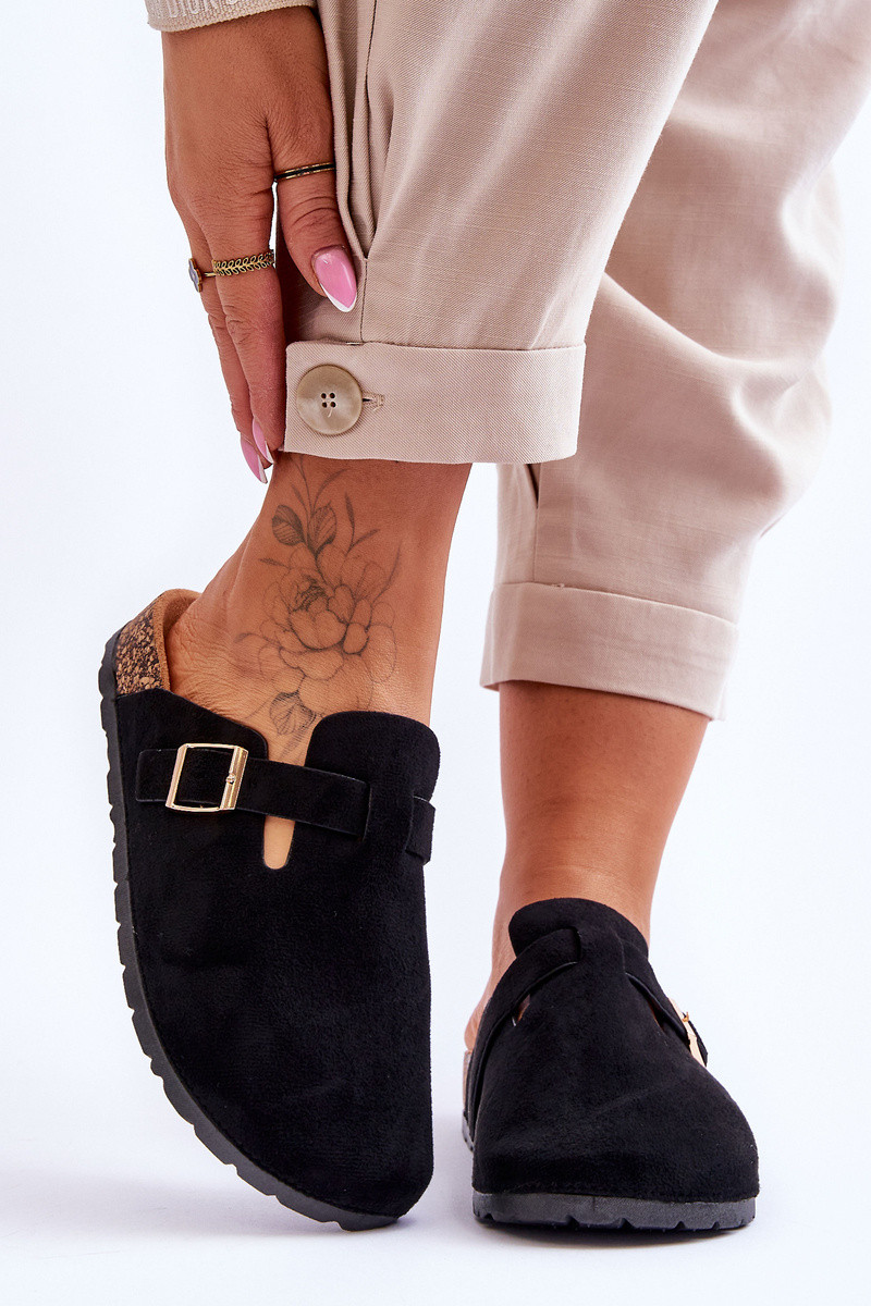 Chaussons en daim sur plateforme en liège couleur noire Vellma