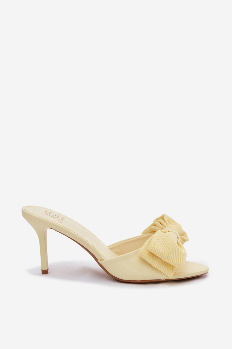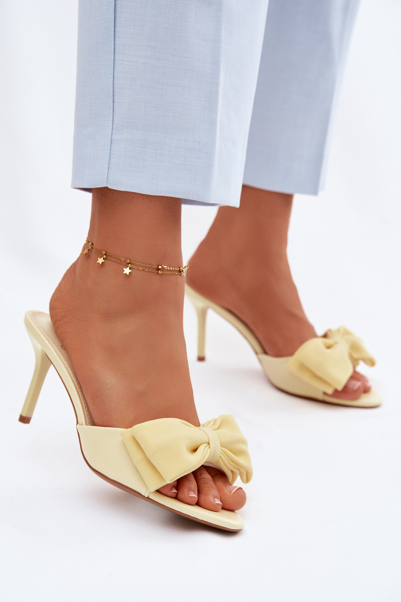 Mules pour femmes avec fins talons et nœuds couleur jaune Jelessa