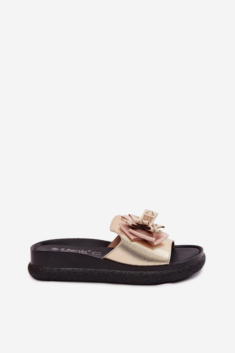 Chaussons pour femmes en cuir naturel avec nœuds S.Barski KV61-6061 couleur or