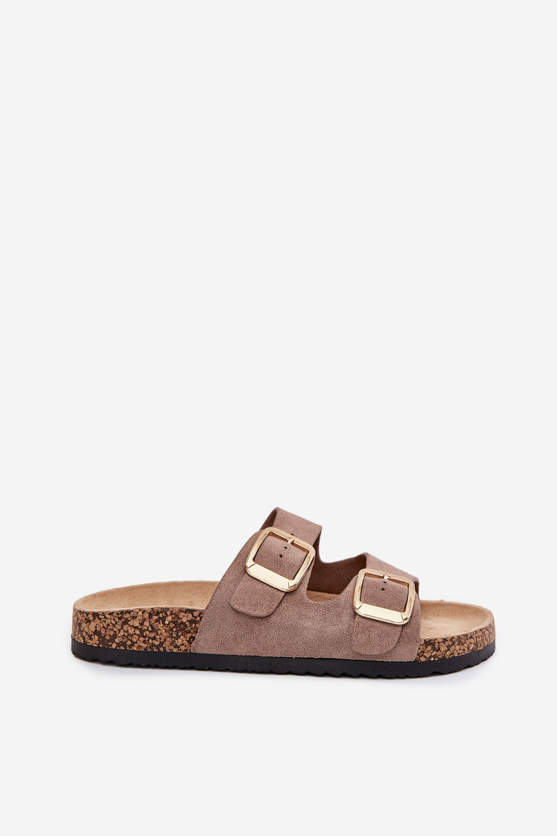 Chaussons en faux daim couleur sable avec boucles dorées Vorella