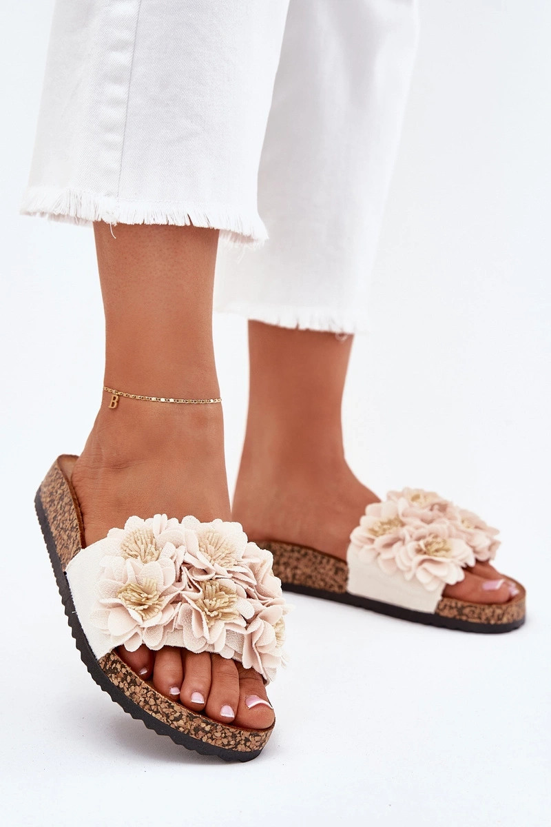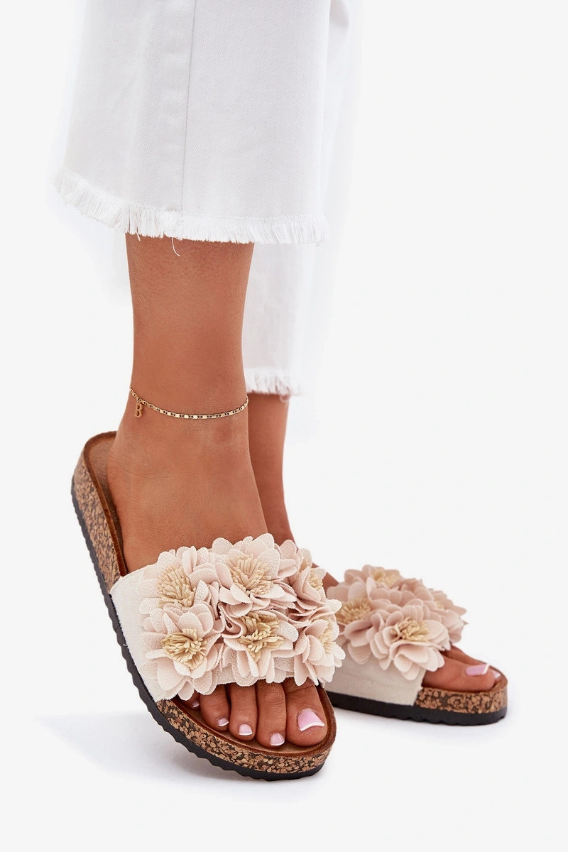 Chaussons en simili cuir rose sur semelle en liège avec motifs floraux Seleneza