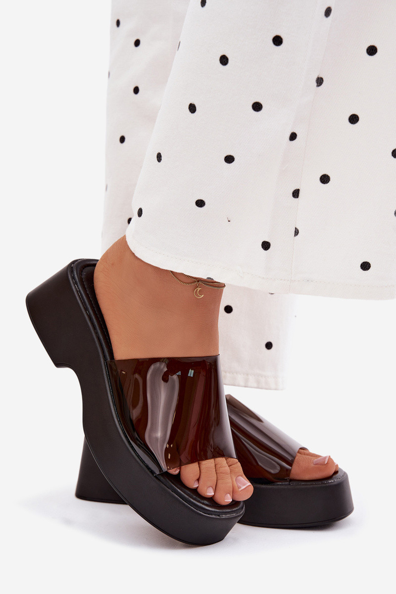 Pantoufles pour femmes avec une plateformeTransparentnym Bandesem couleur noire Selestia
