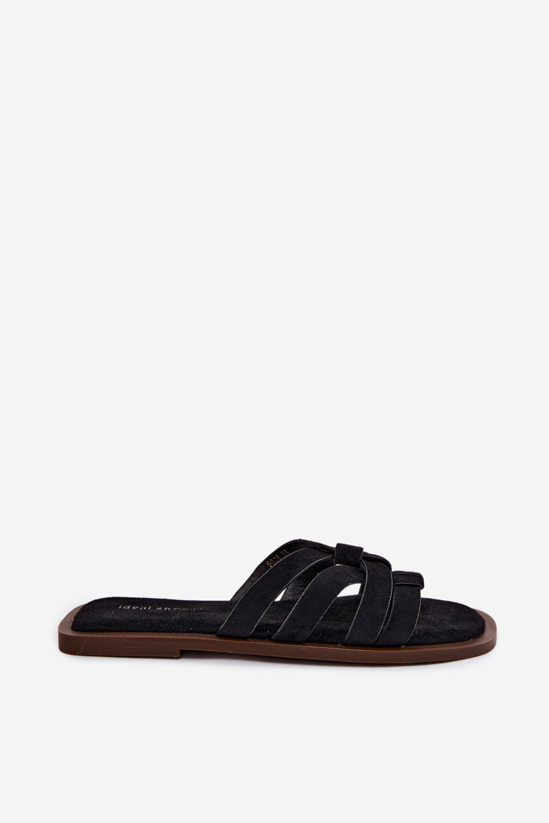 Chaussons pour femmes avec brides en daim synthétique couleur noire Calvia