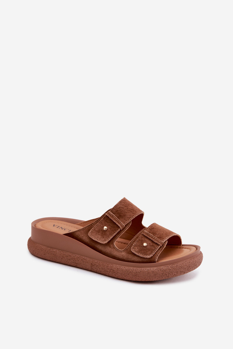 Peau Chaussons femme en daim avec une plateforme Vinceza 66916 marron