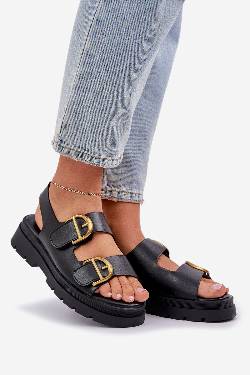 Sandales féminines en simili cuir avec boucles noires Vulinea