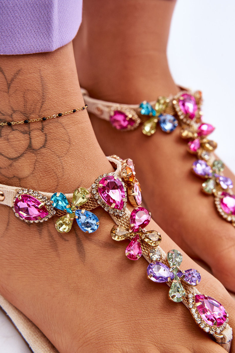 Sandales-chaussons en nubuck avec décoration en pierres couleur sable Frency