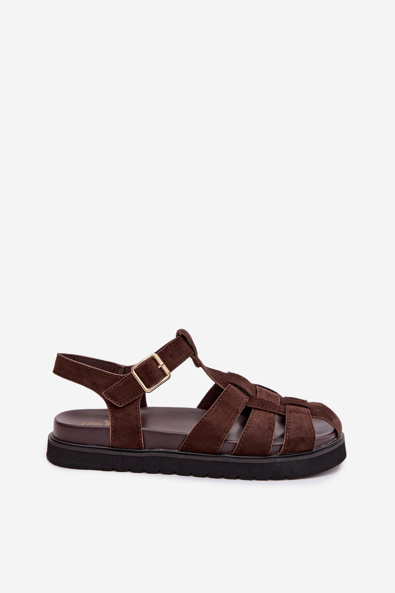 Sandales pour femmes Rzymianki avec boucles dorées avec une plateforme CzekoladoÀe Terelina