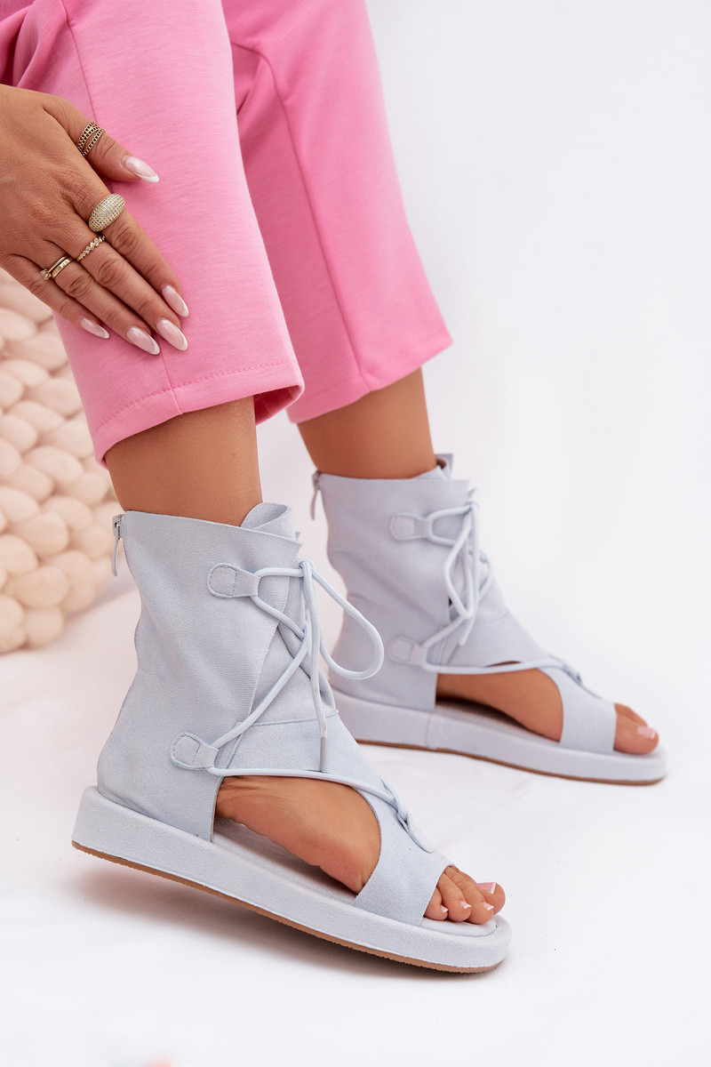 Sandales pour femmes en daim écologiqueoÀe avec une botte I DANSiązaniem bleu clair Ferlisse