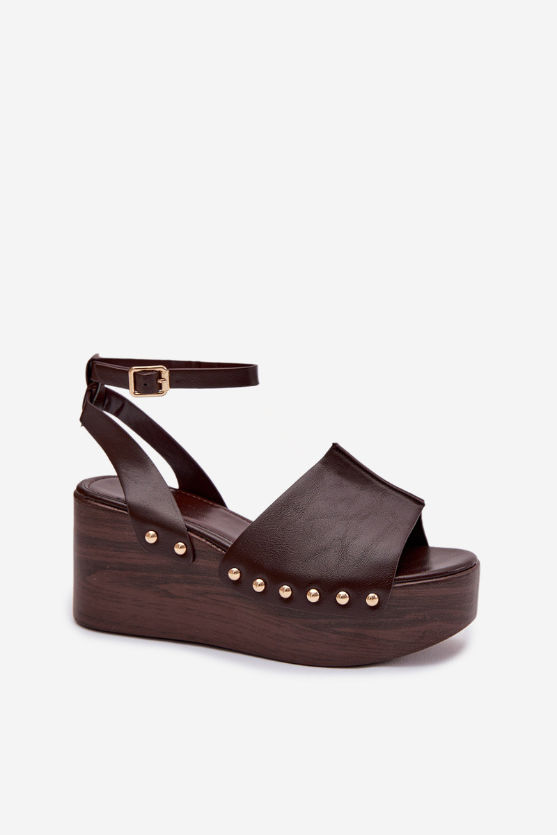 Sandales pour femmes Sur un coin Ze couleur doréemi Goujons CzekoladoÀe Galorina