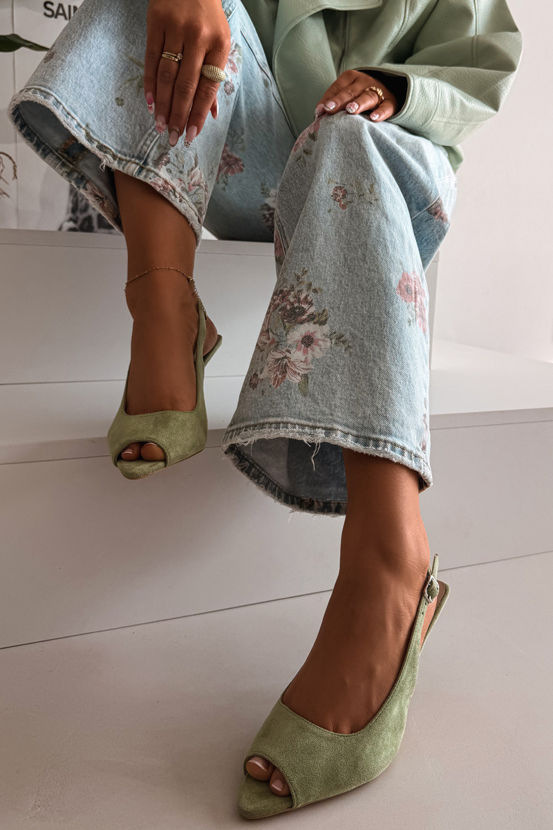 Sandales pour femmes en suédine avec des talons fins couleur verte Sevina
