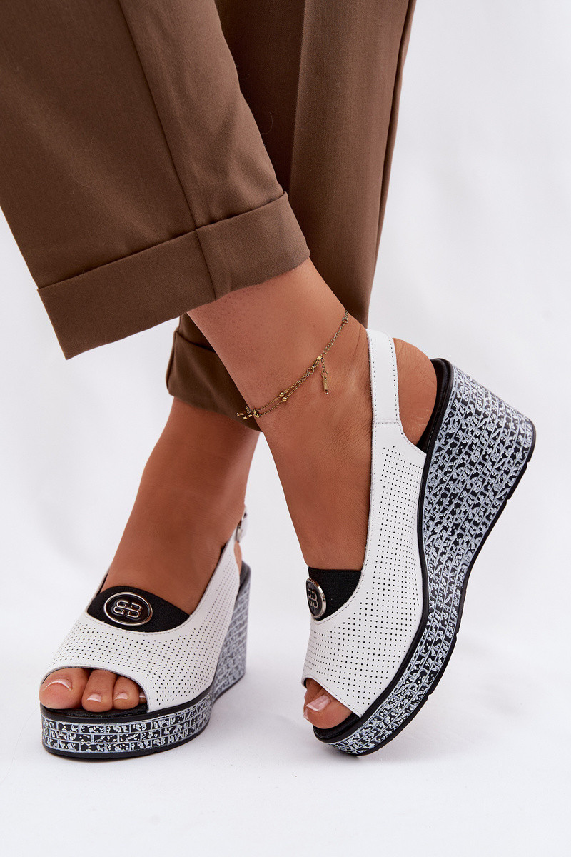 Sandales à plateforme en cuir S.Barski LR61-7010 couleur blanche