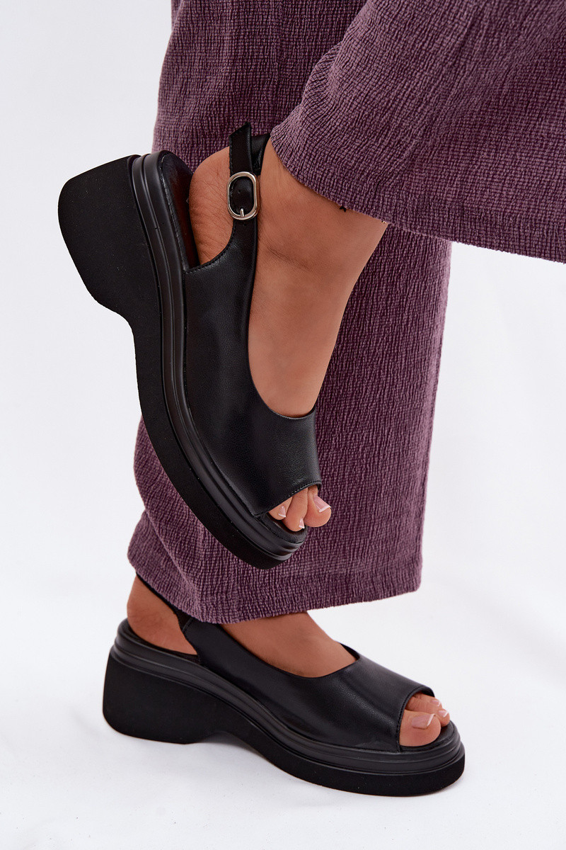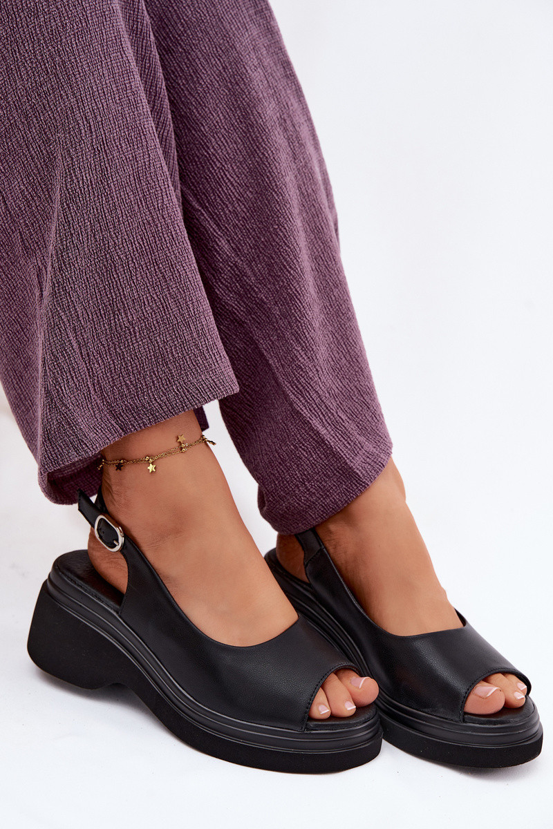 Sandales en cuir à plateforme Vinceza 66936, couleur noire