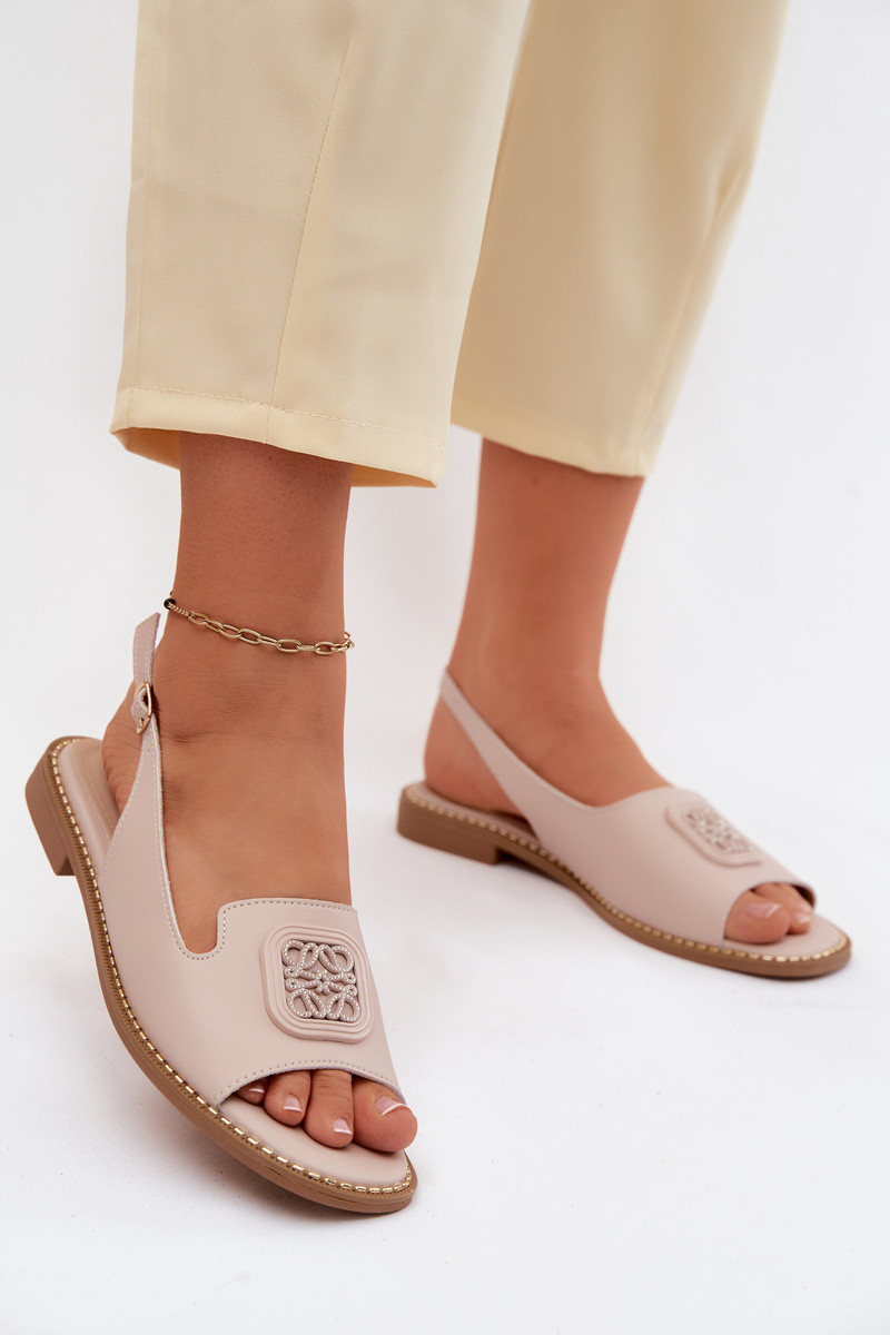 Sandales pour femmes avec talons larges et ornements S.Barski KV61-6018 couleur chair