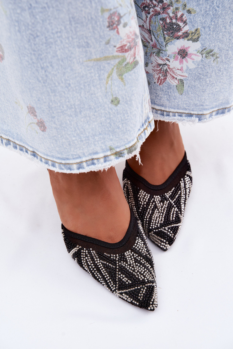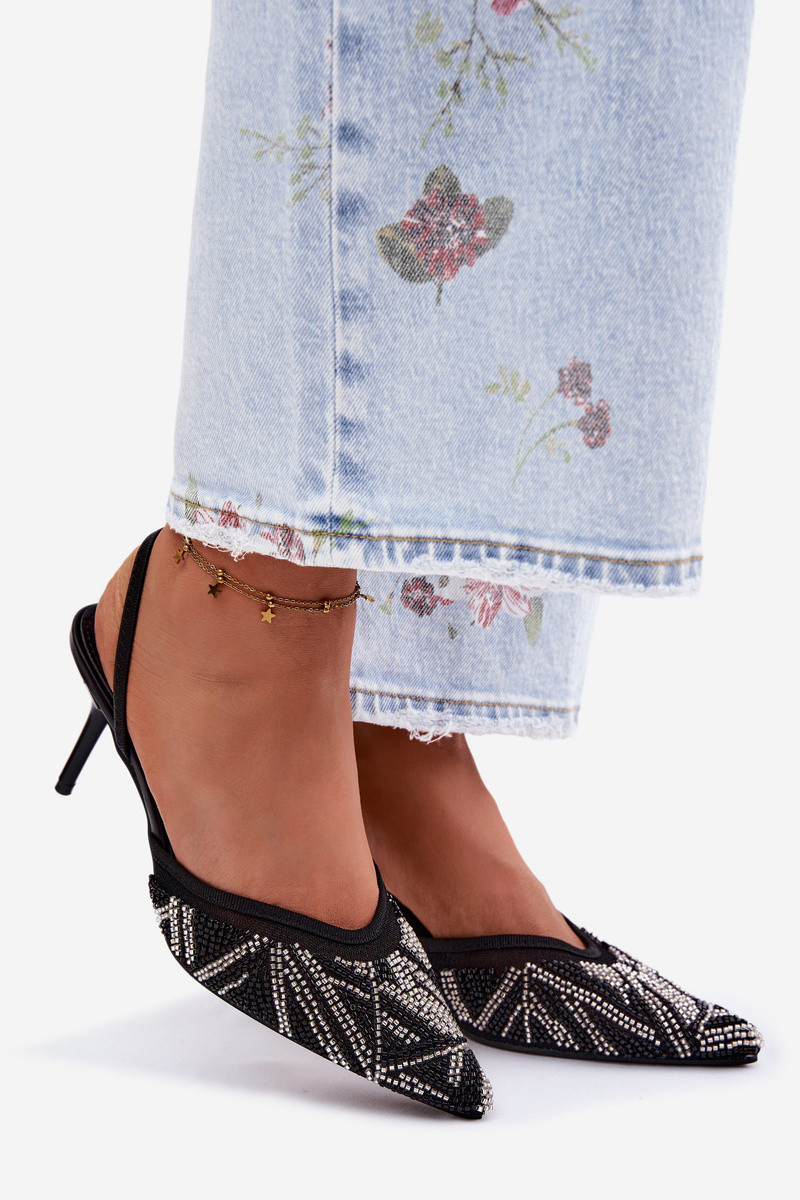 Décoré des sandales avec maille avec des talons fins couleur noire Bedira