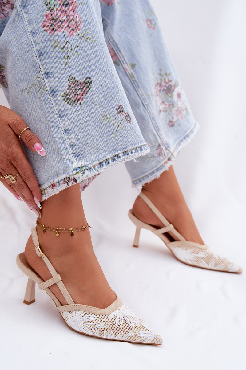 Sandales à talons hauts avec des fleurs beige Kelmira