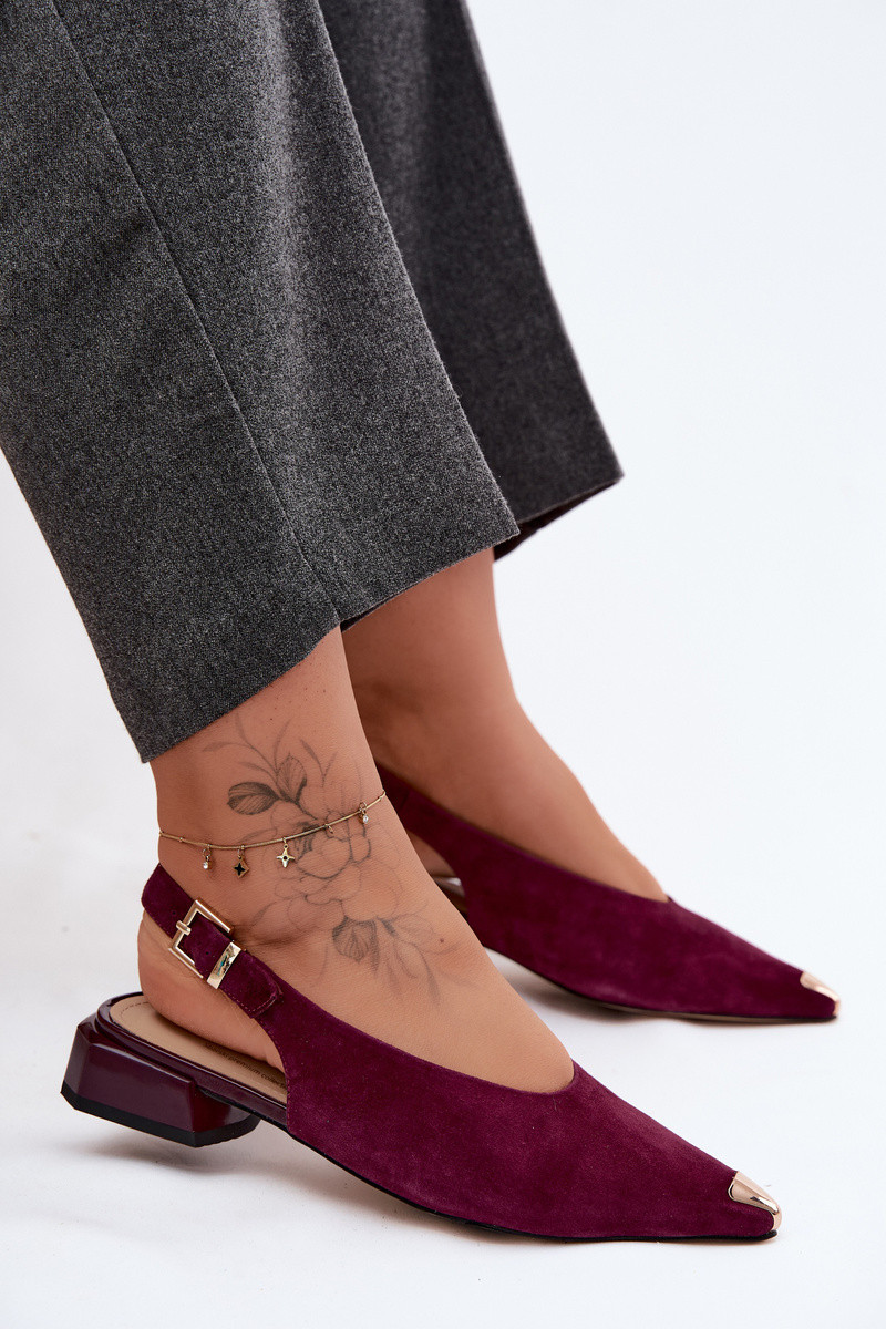 Sandales en daim pour femmes à talons bas D&A CR61-3050 bordeaux