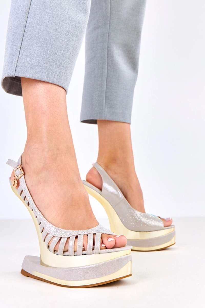 Sandales grises avec zircons sur un talon futuriste, Kenni