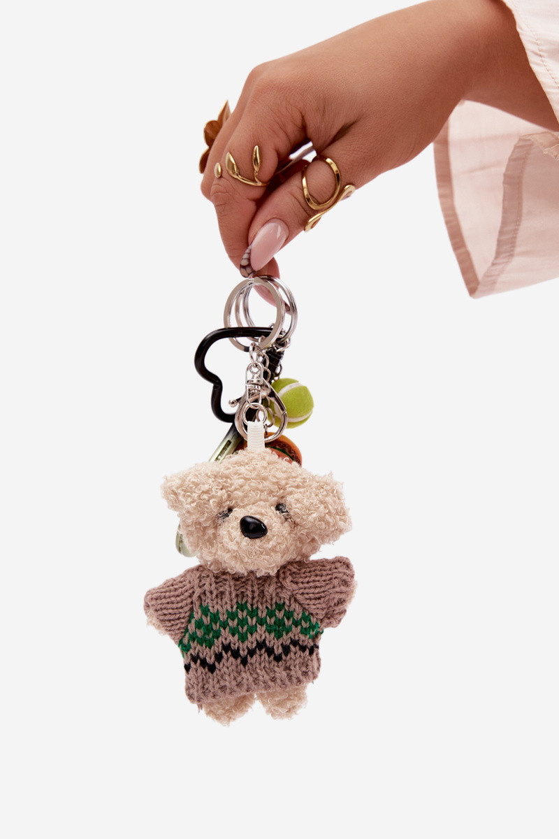 Sleutelhanger met teddyberen in een trui met raket en hamburgerbal in groen