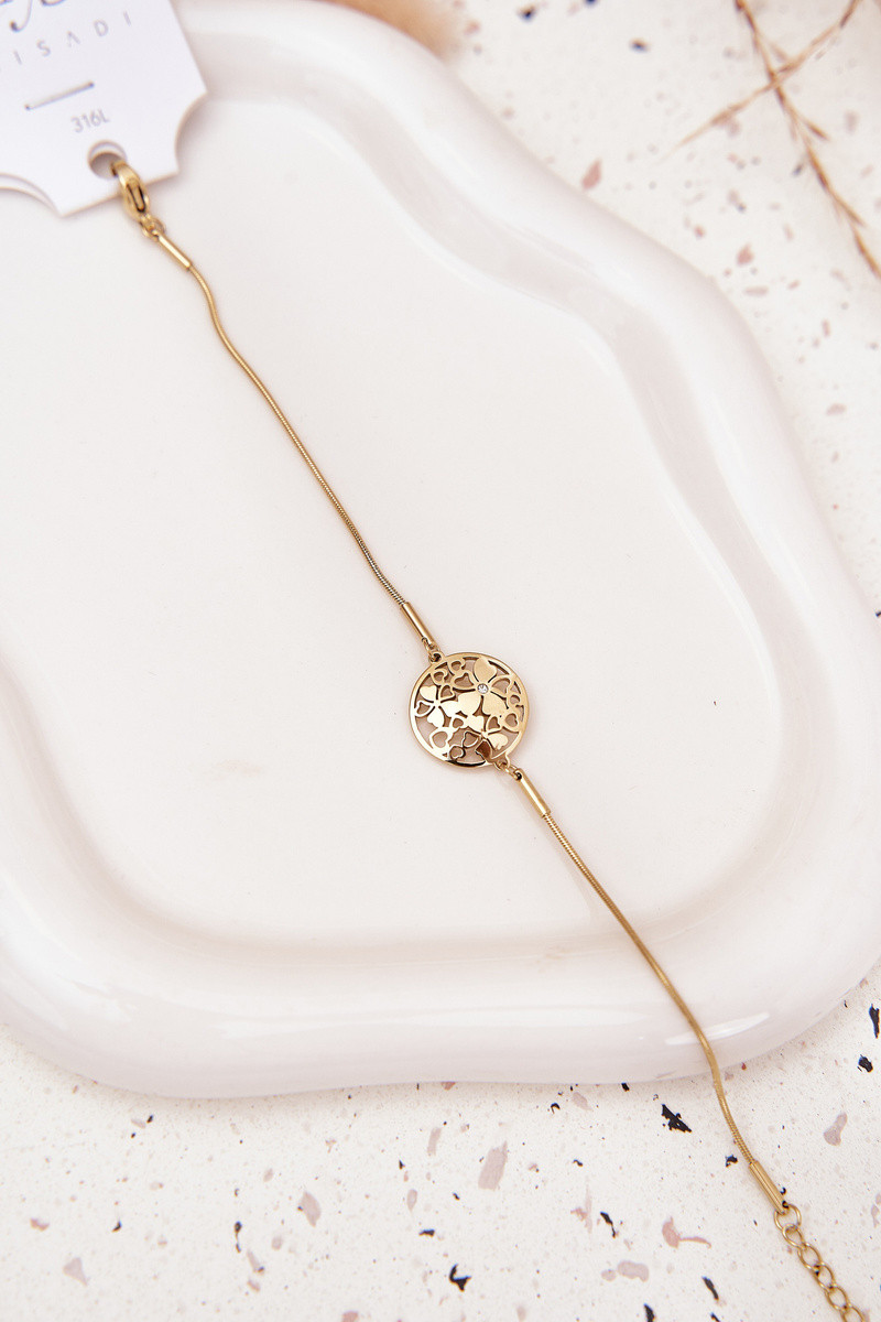 Damesarmband met ringbedel en bloemenmotieven in goudkleur