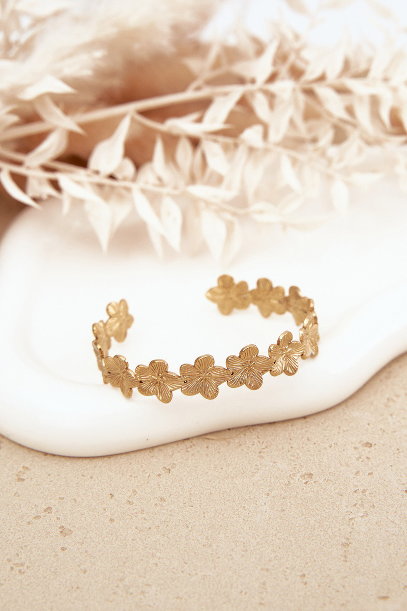 Armband VrouInelijk uit roestvrij staal met bloemmotievenuszki gouden kleur