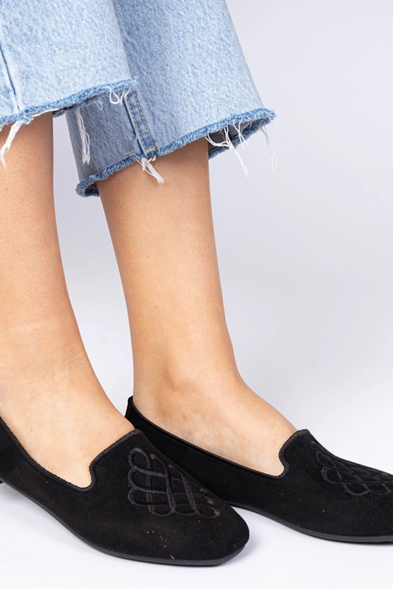 Zwarte dames ballerina's van kunstsuède met borduursels Ronna