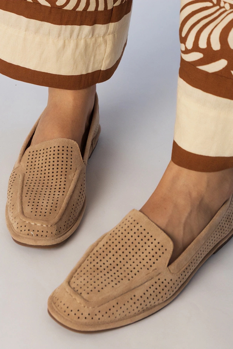 Zandkleurige geperforeerde mokassins van kunstsuède, „Stanila"