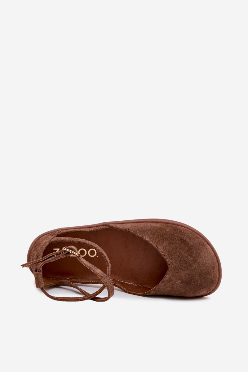 Faux suède dames ballerina's met bandjes Zazoo 320 in bruine kleur