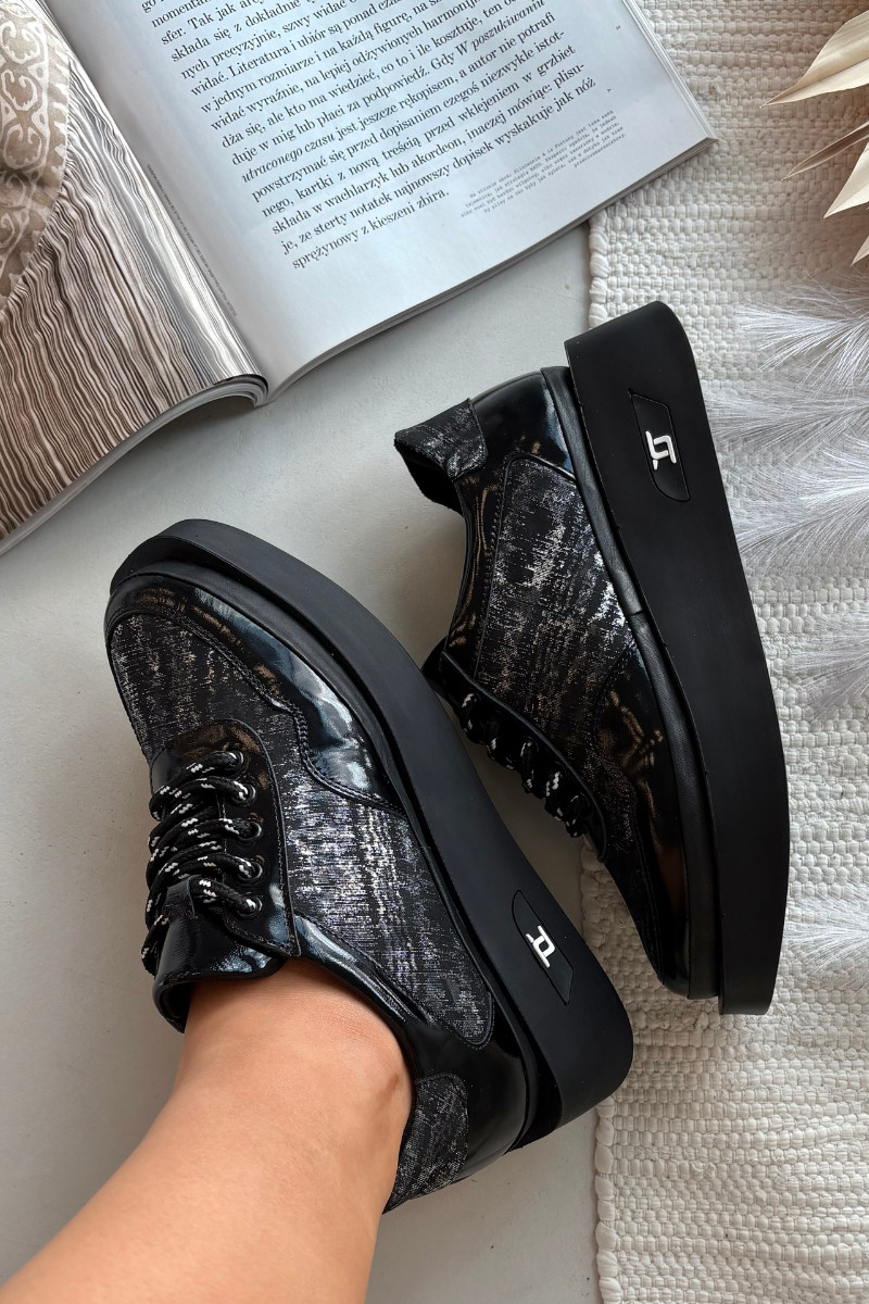 Leren dames veterschoenen met plateau Artiker 57C2043, zwart en zilver kleur