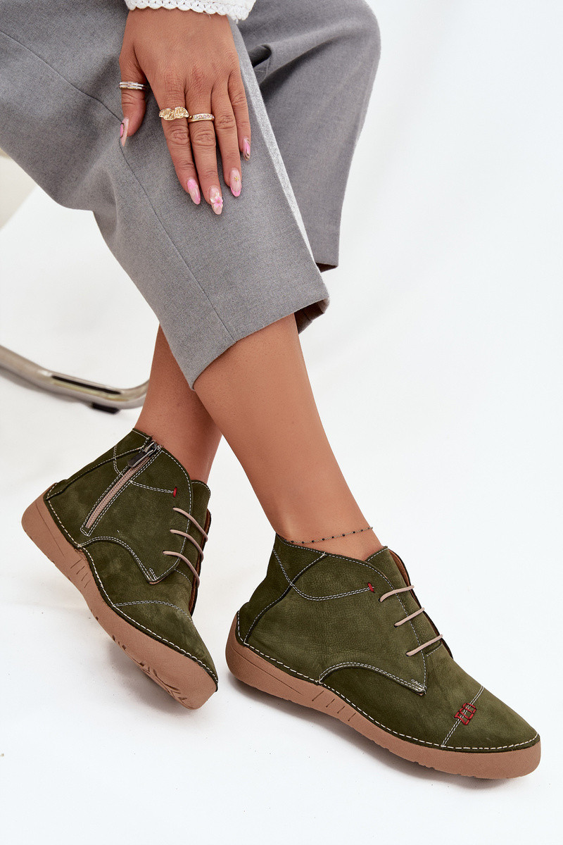 Leer schoenen DamesPrzeszyciami Opar het kasteel Artiker 57C2119 groene kleur