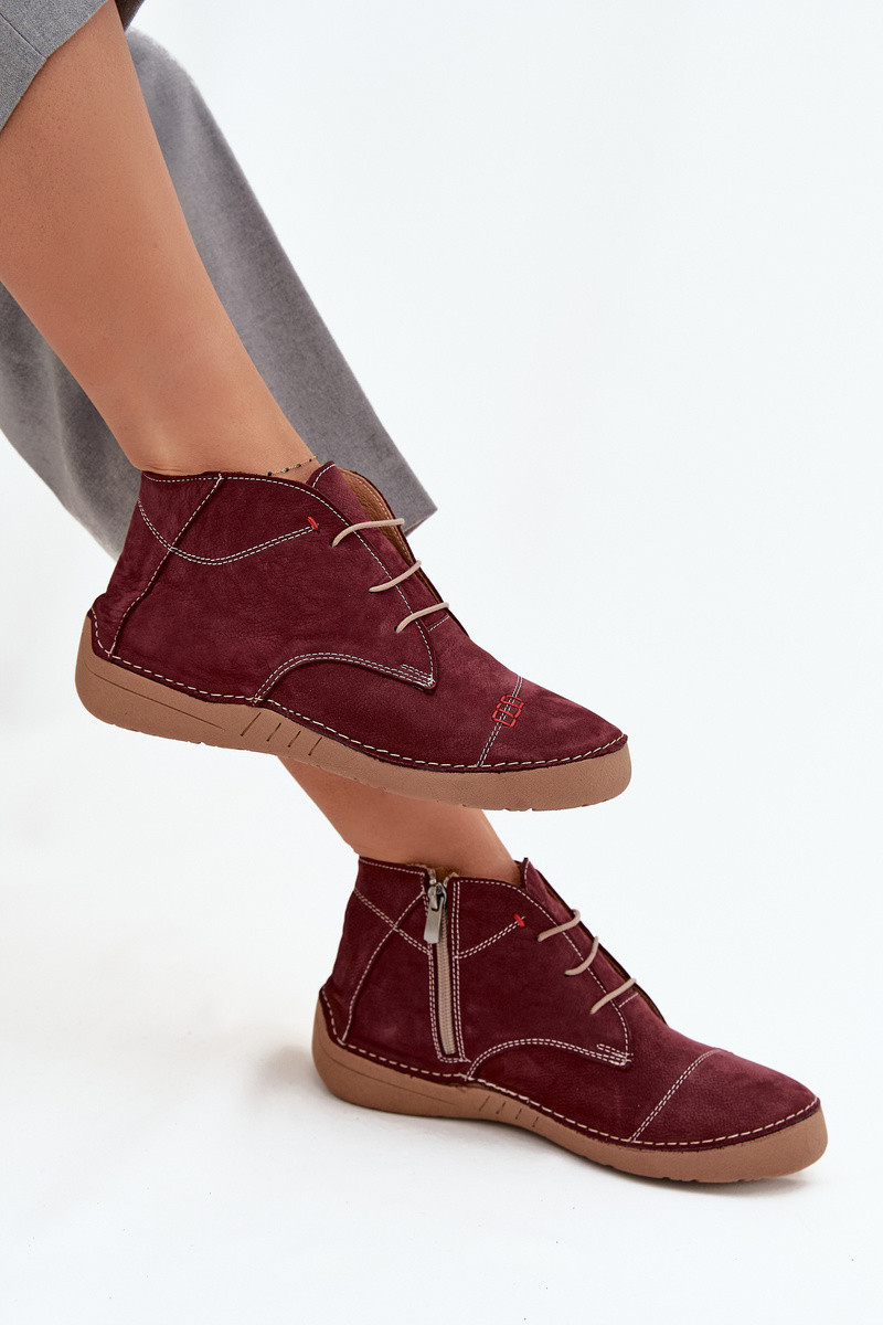 Leren dames schoenen met naden, kasteeltype, Artiker 57C2116, bordeaux kleur