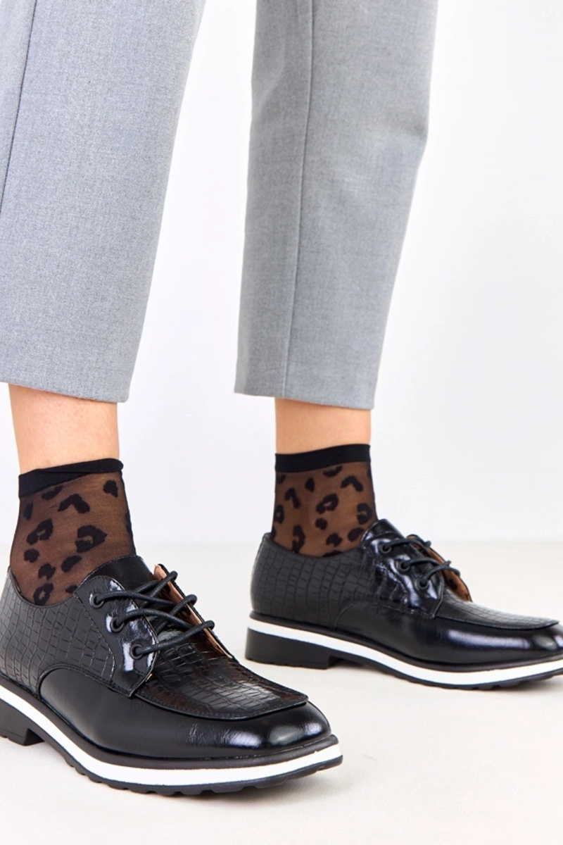 Zwarte halfhoge schoenen met reliëf en vierkante neus Kerawa