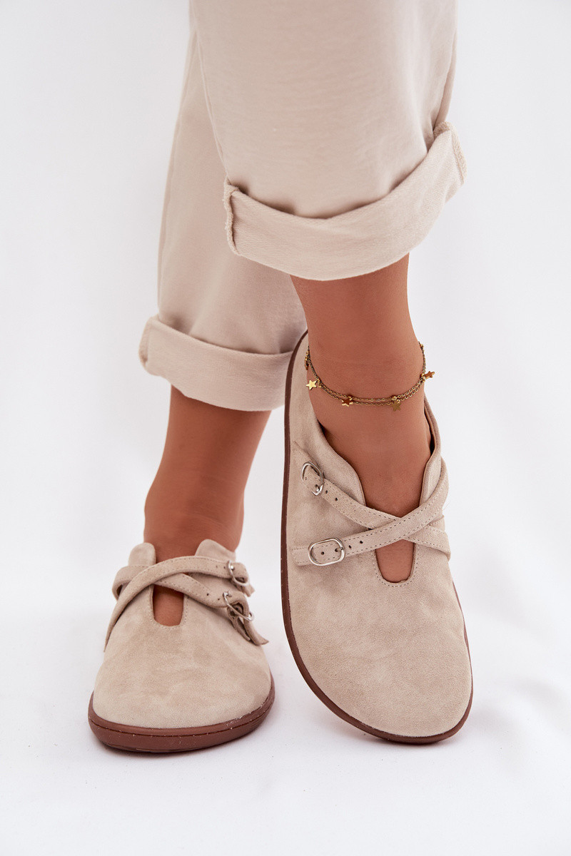 Leren suède dames "Barefoot" schoenen met bandjes Zazoo N1271, ivoorkleur