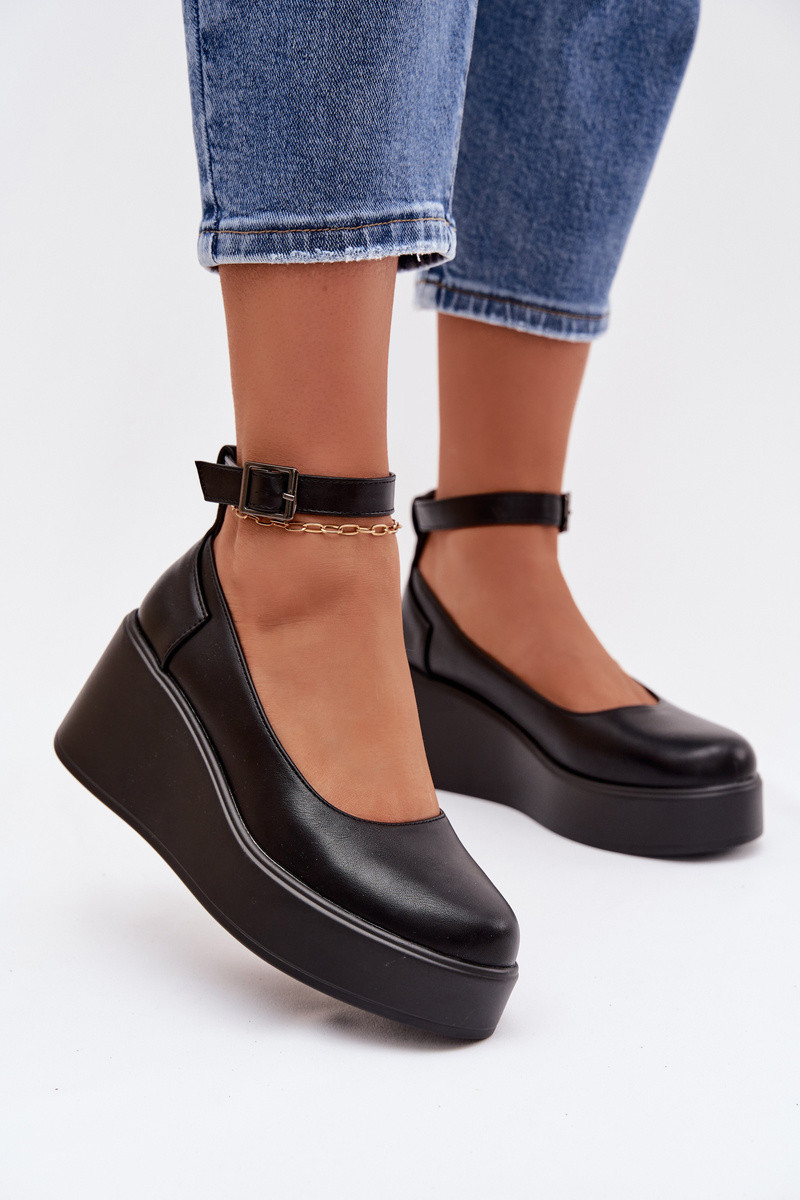 Dames zwarte platform schoenen met riempjes Belvissa