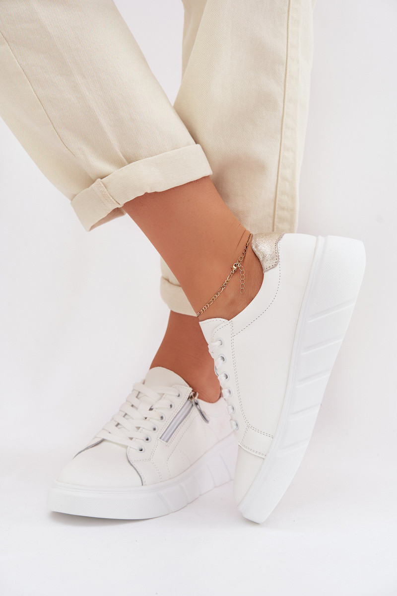 Dames leren schoenen met ritsen Althea witte kleur