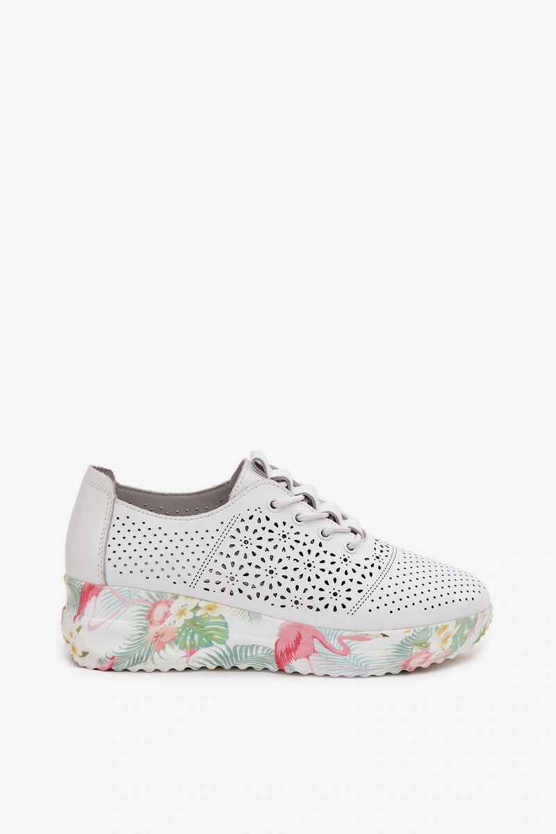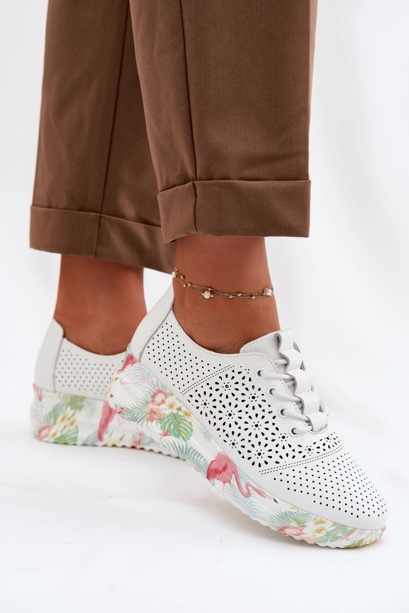 BotoDames leren schoenen met perforaties Telina witte kleur