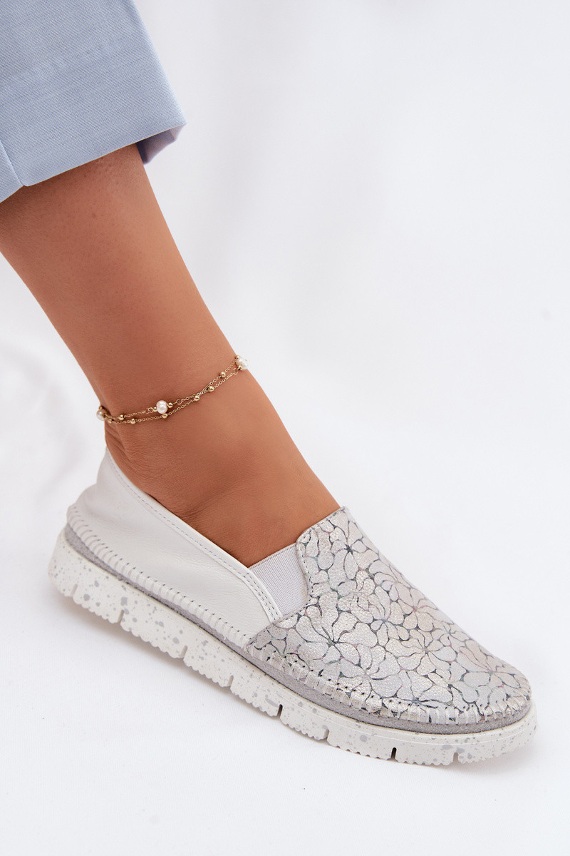 Dames leren instapschoenen Tai turiciejka 03512-70 wit-zilverkleurig