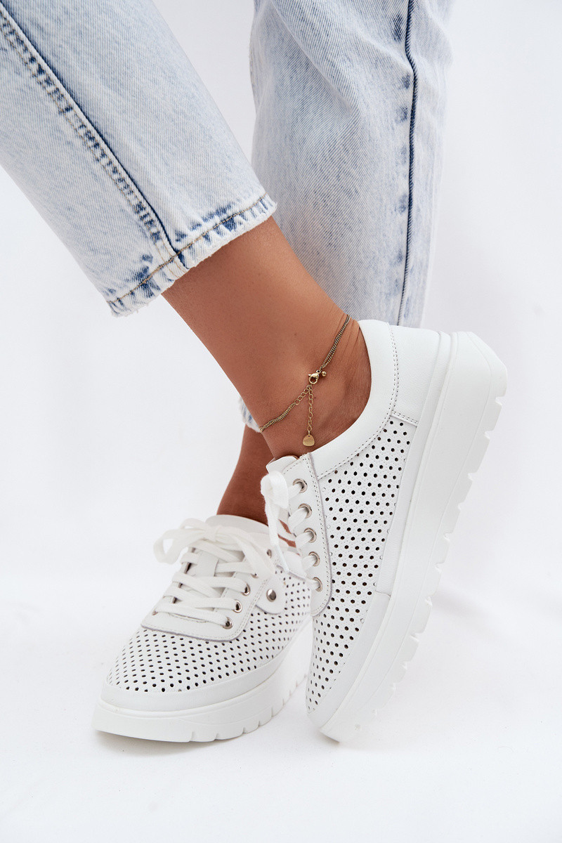 Gouden geperforeerde leren schoenen voor dames Vinceza 79629