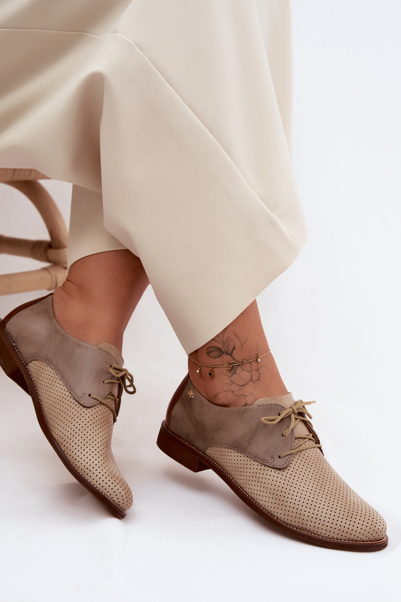 Elegante gouden leren dameschoenen met veters Zazoo 4238