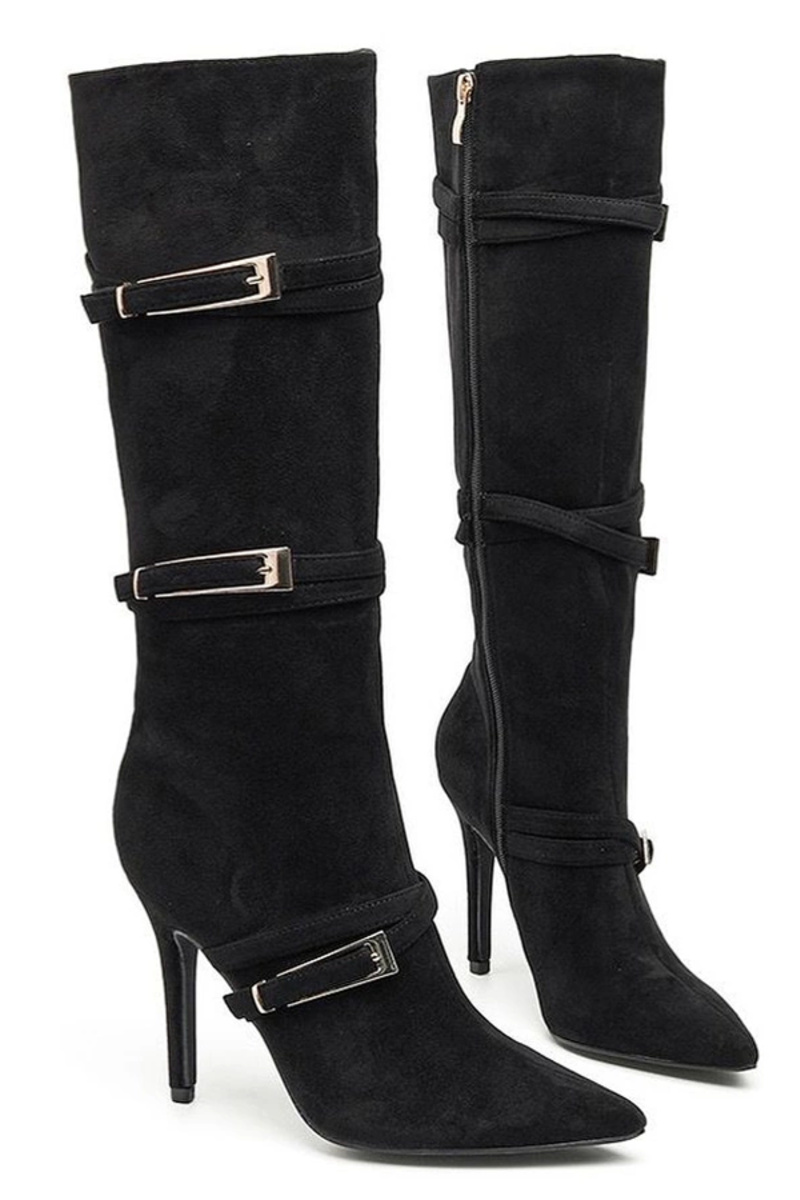 Zwarte laarzen met dunne hak en decoratieve gespen Sadie