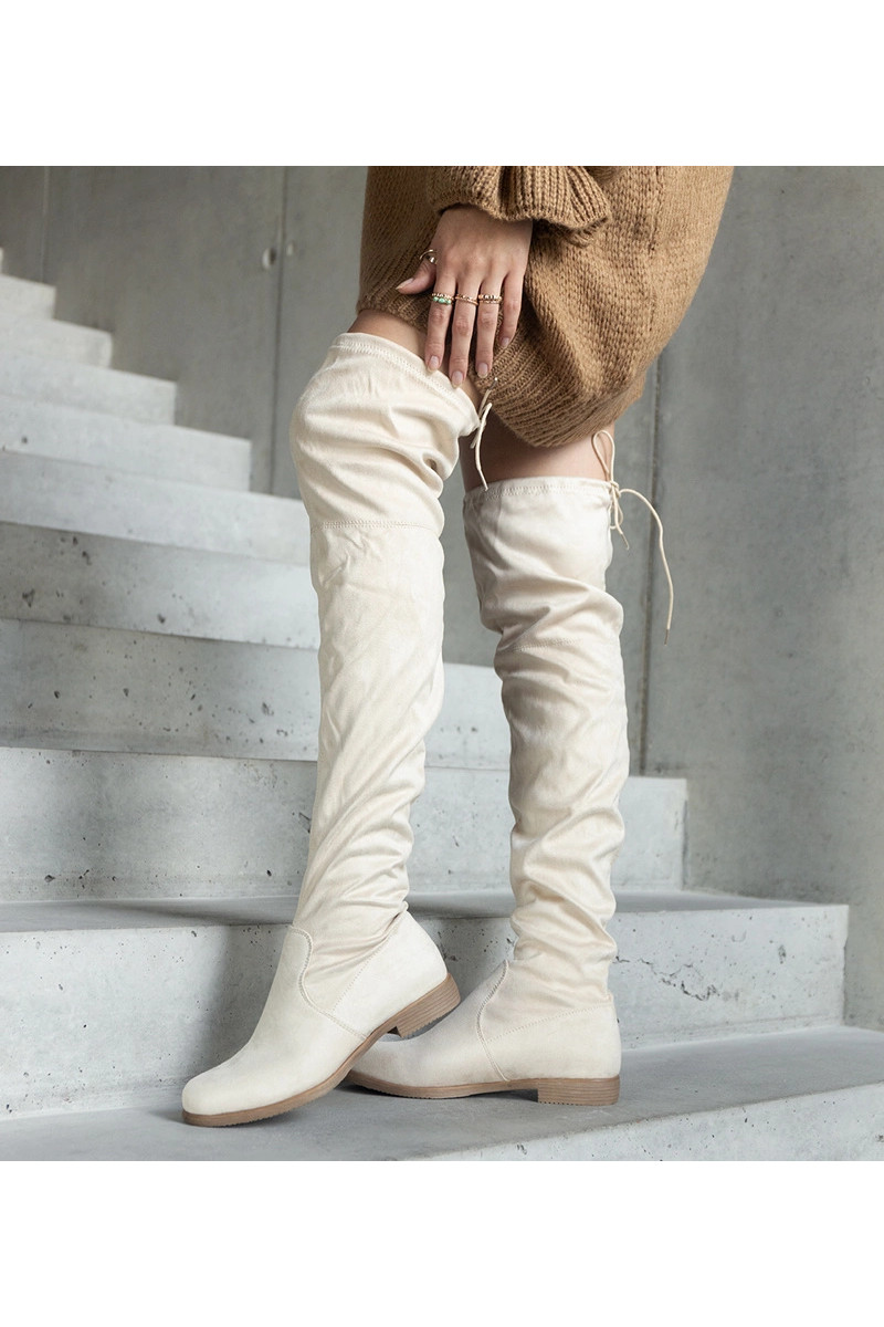 Beige lange laarzen met platform van eko-suède Hallora
