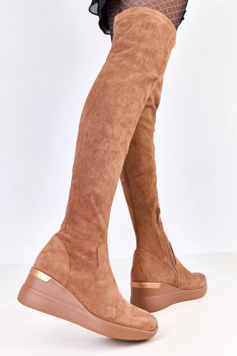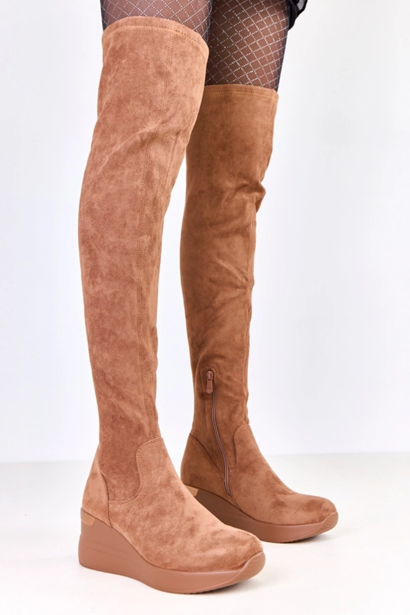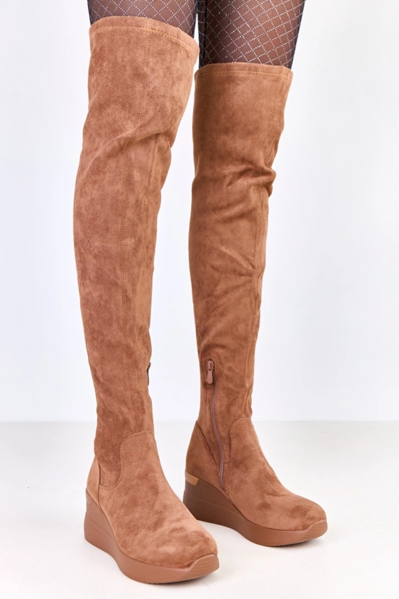Bruine kunstsuède enkellaarsjes op platform Roland