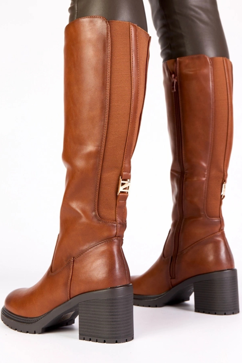 Bruine vintage stijl lange laarzen op een hak Akija
