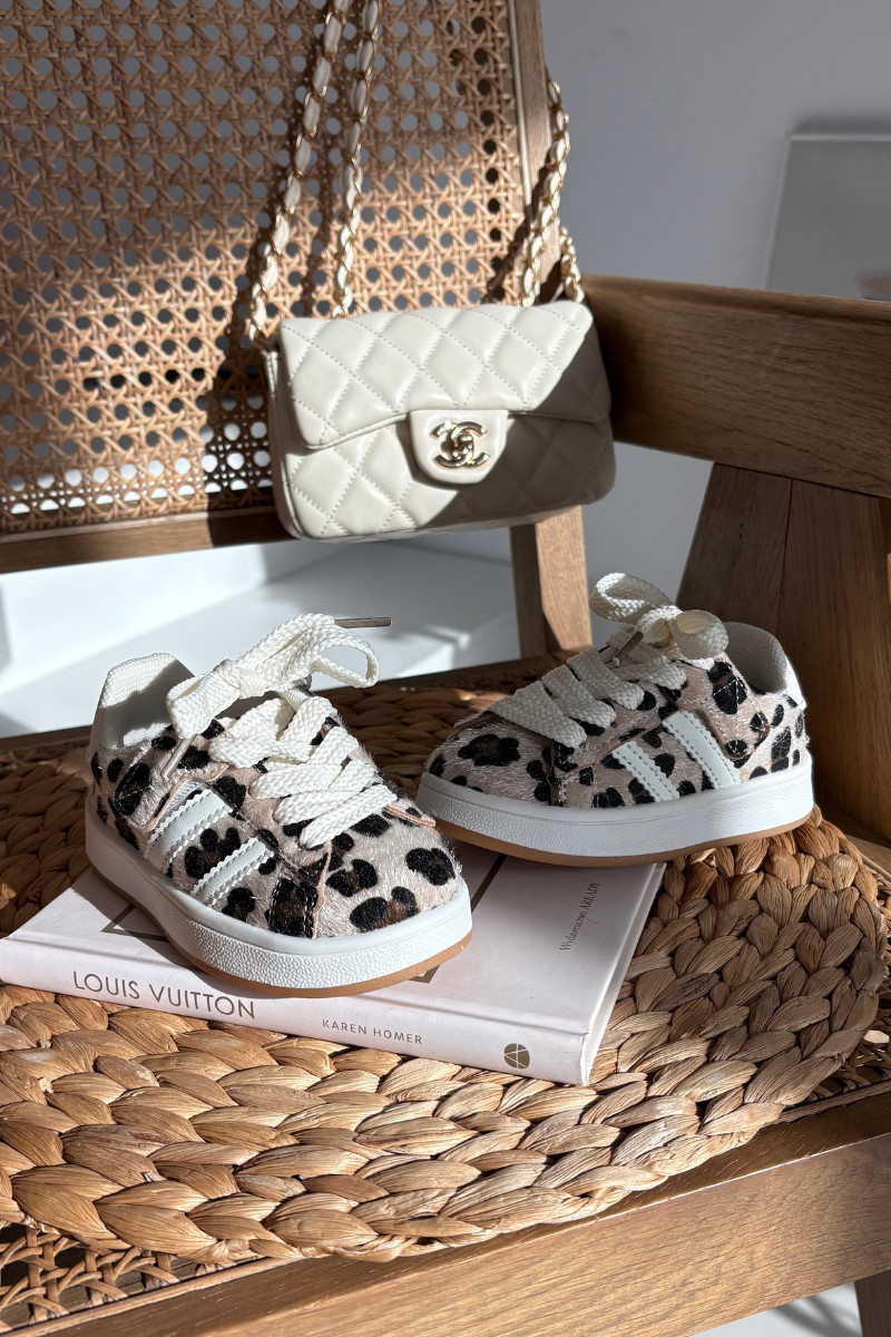 Kinderen sportschoenen Sneakers model met luipaardprint, zandkleur, Amelle