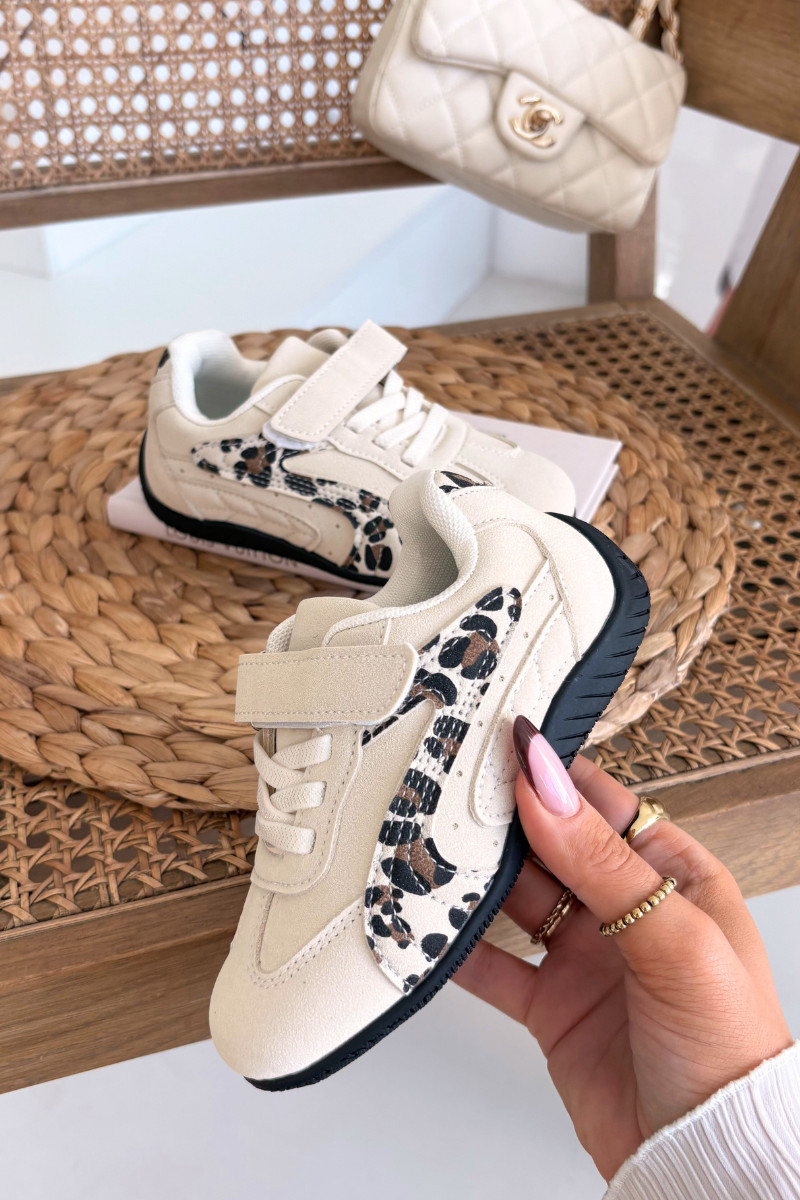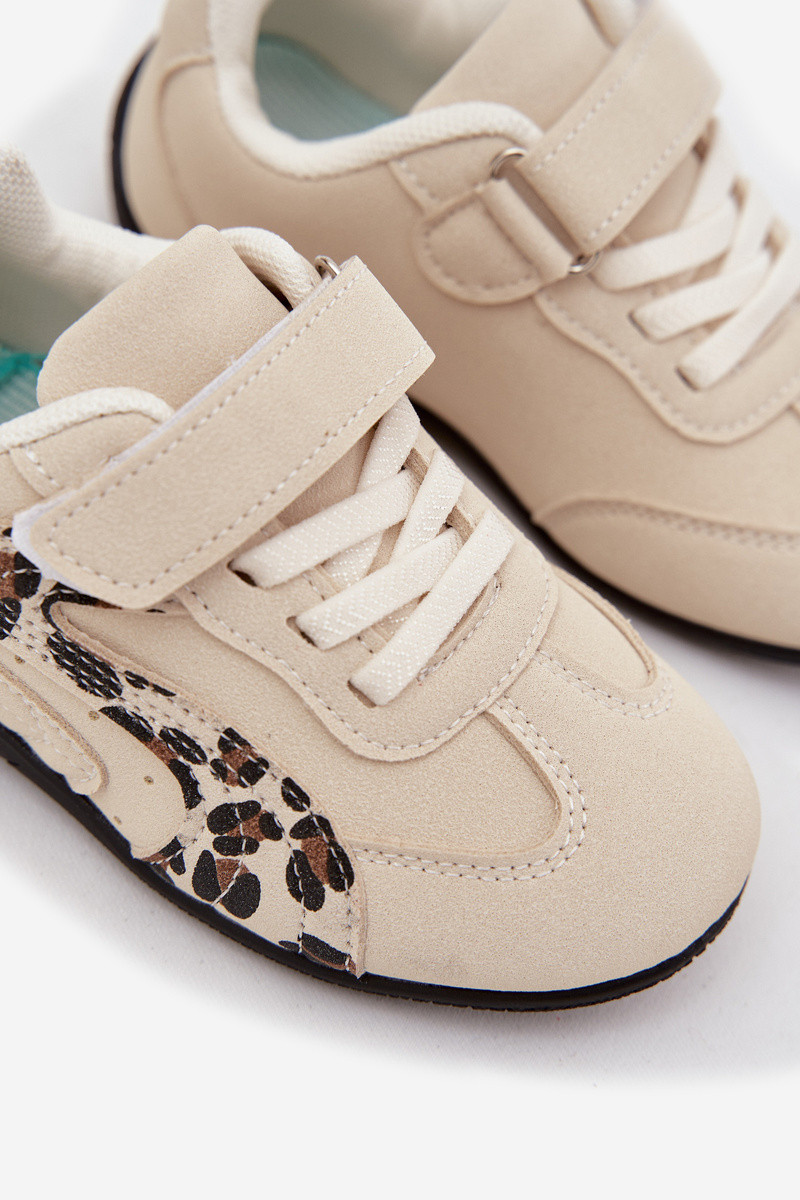 Kinder sneakers met klittenbandsluiting in zandkleur met patronen Perrin