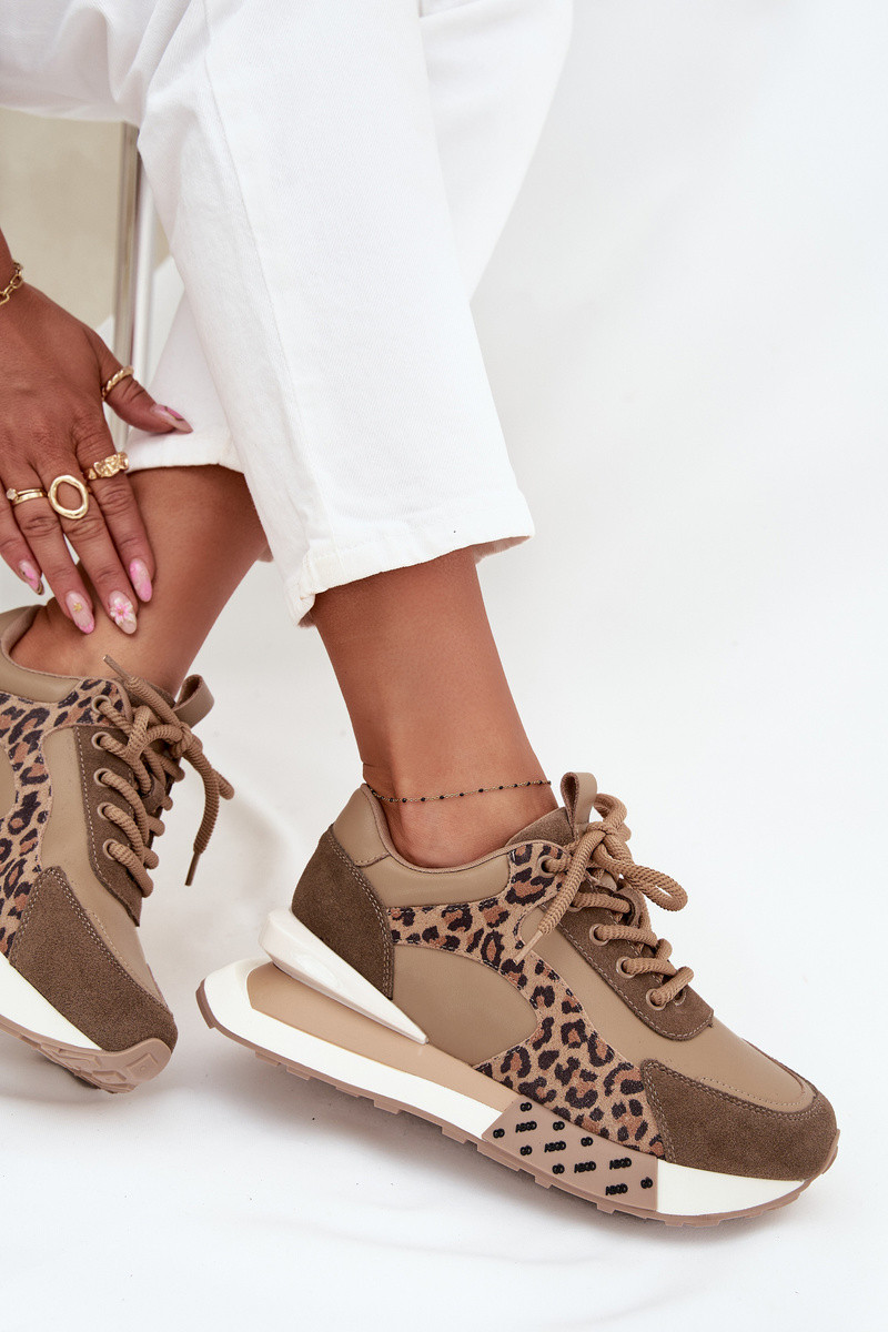 Leren dames sneakers in sportieve stijl met platform en luipaardprint Artiker 55C0089 bruine kleur
