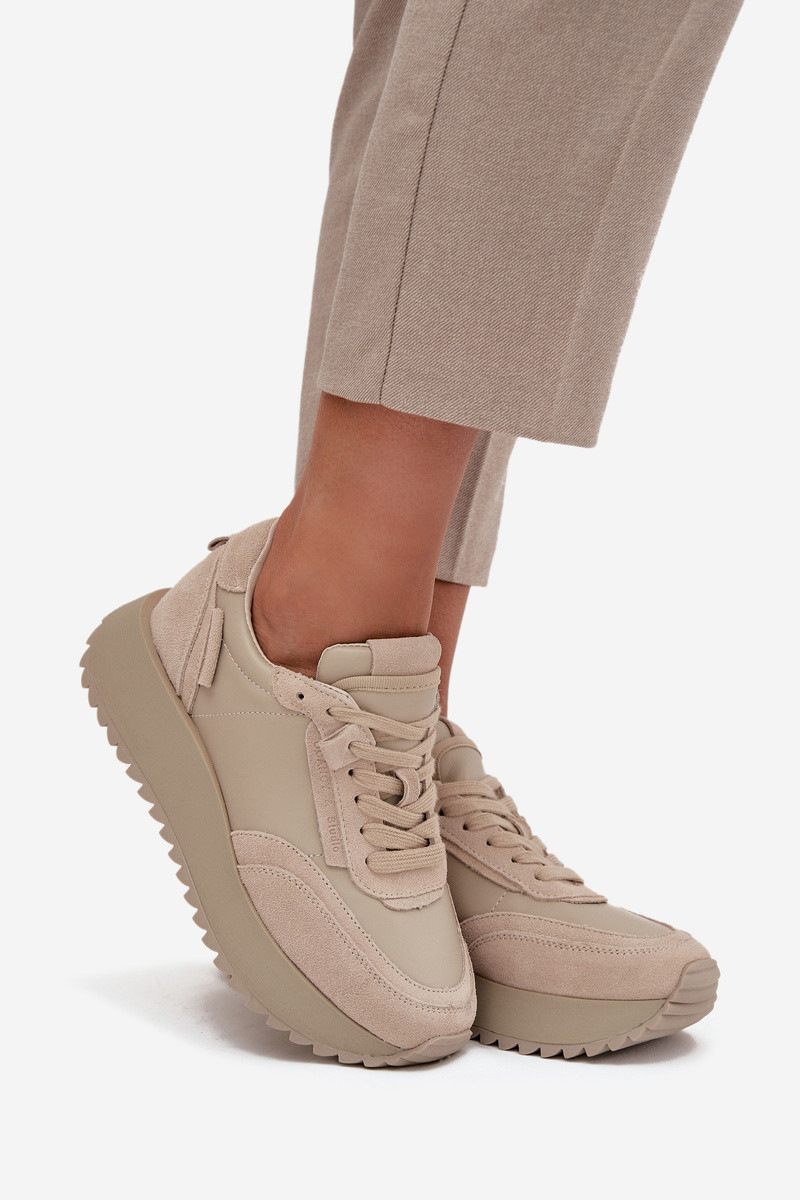 Leren dames sneakers met plateau Artiker 55C0021, zandkleur