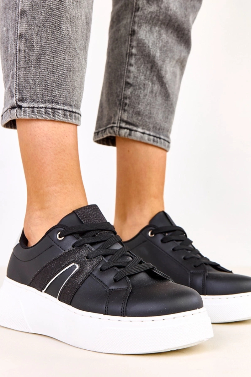 Zwarte sportieve schoenen met platform en glinsterend accent Jeromi