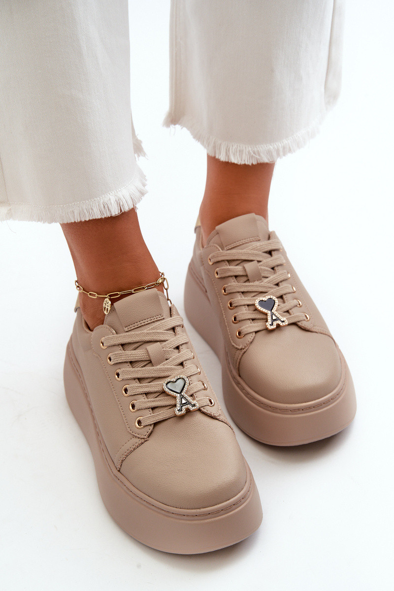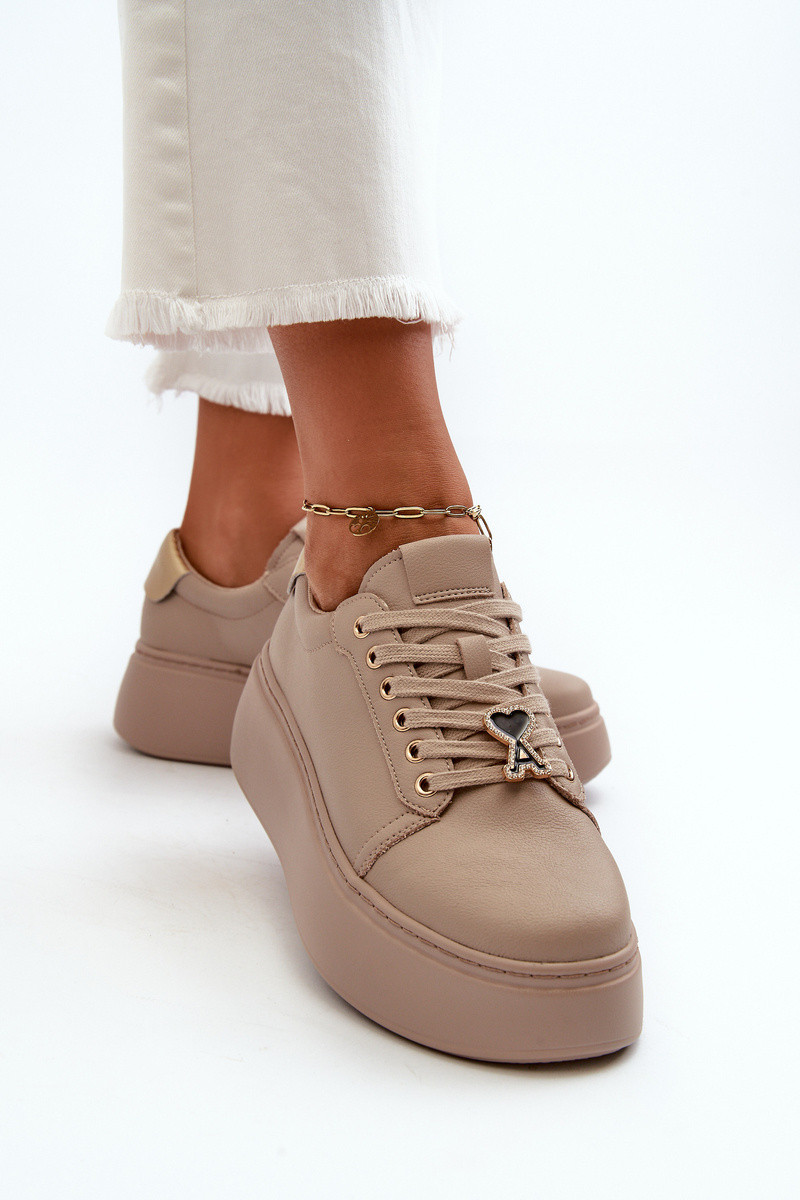Dames Leer Sneakers model schoenen met platform beige Vinceza 66700