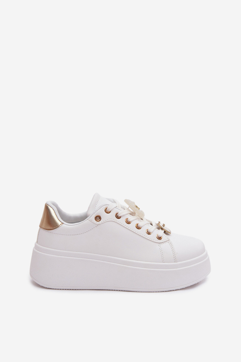 Dames schoenen in sneakerstijl met plateau en hangers Beertjes met hartjes wit-goud Selorissa