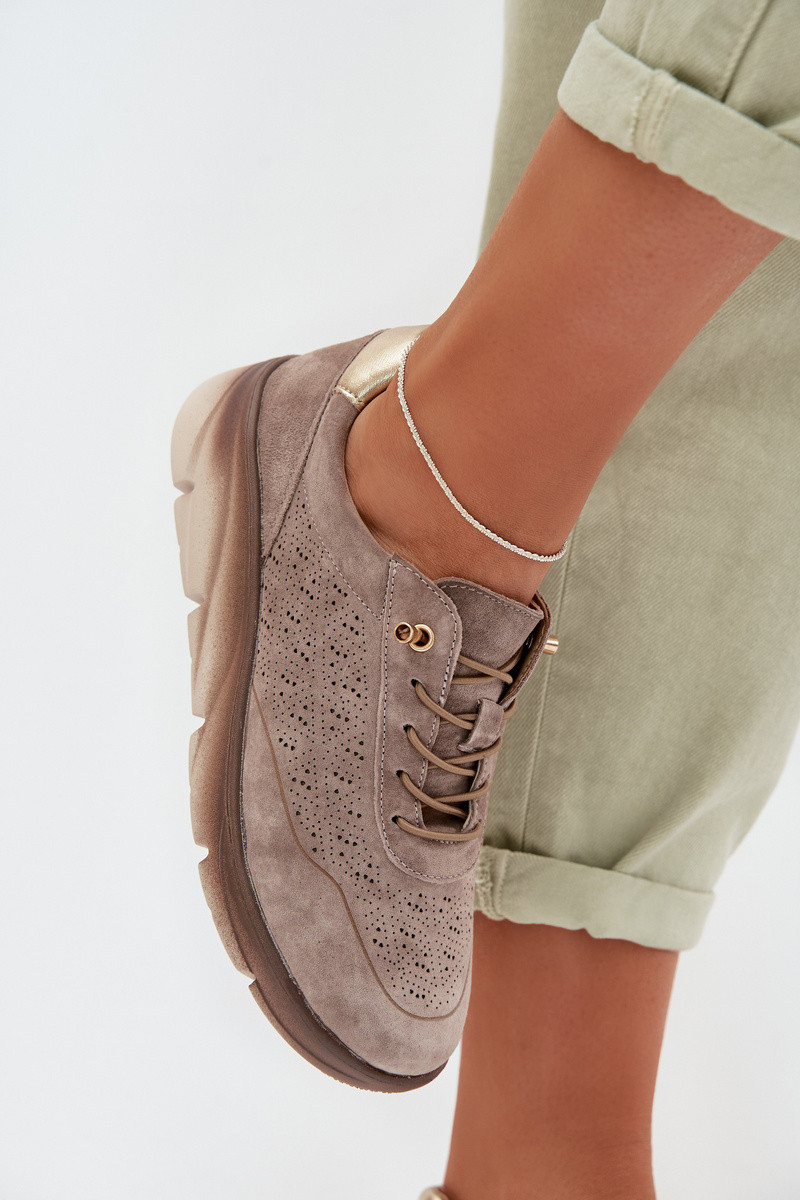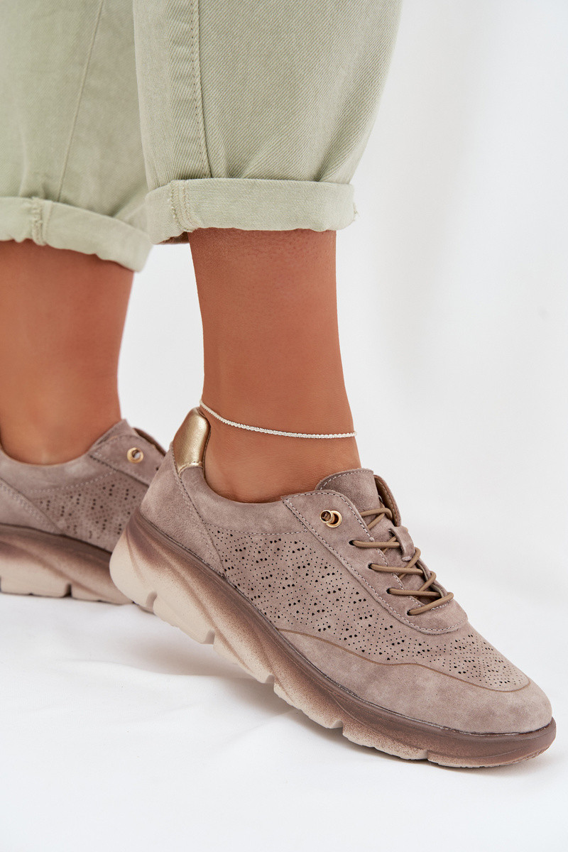 Suède dames sneakers in sportieve stijl met ażurowe elementen Sergio Leone SP-002 bruin
